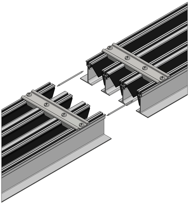 Alignment pins (2 per middle or end section) are supplied loose for installation between linear sections by the installer.