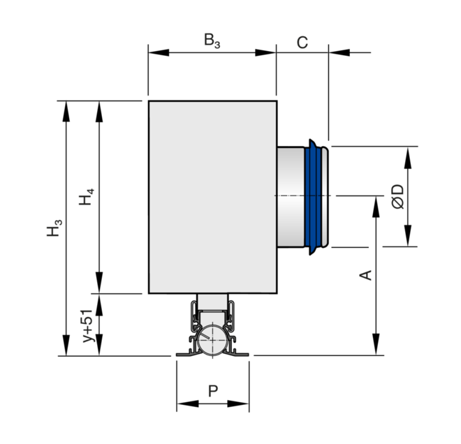 Position of the spigot, defined by the distance of the spigot centre line to the lower edge of the suspended ceiling