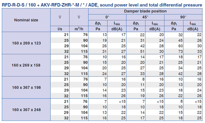 The maximum volume flow rates apply to a sound power level of approx. 40 dB (A) with damper blade position 0°.