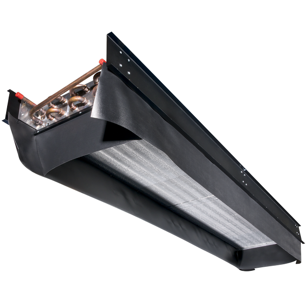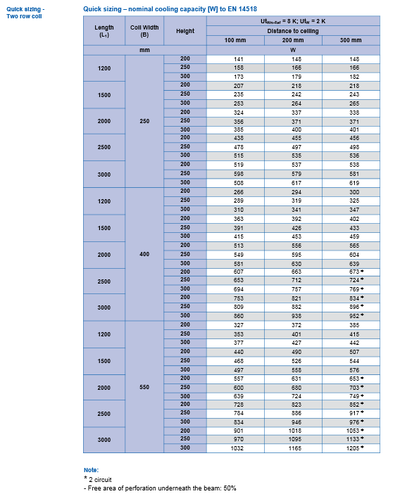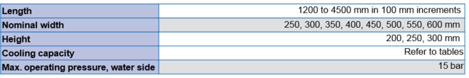 Passive chilled beam, Type TCB, with 2-pipe heat exchanger for ceiling installation either within a ceiling void or can be freely suspended.